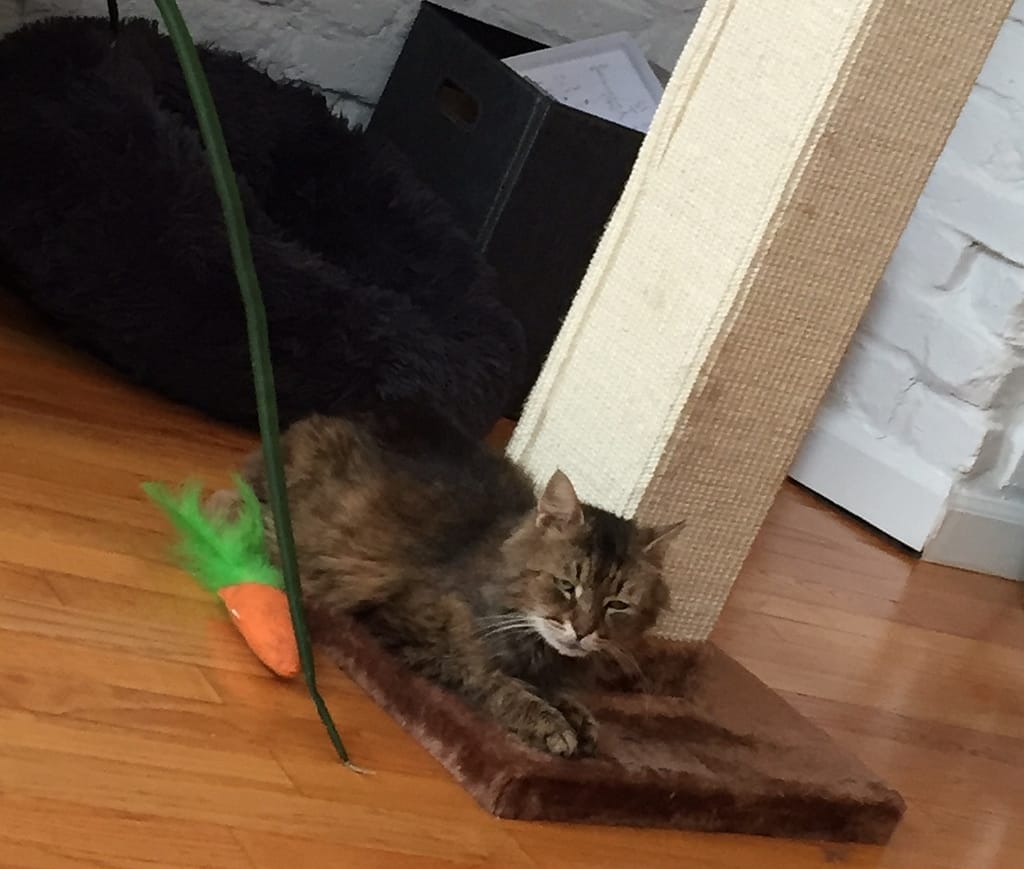 Now that Fang has reigned triumphant in the Great Litter Box War, he’s getting more comfortable with being out of his safehouses… it’s almost like having an office buddy…