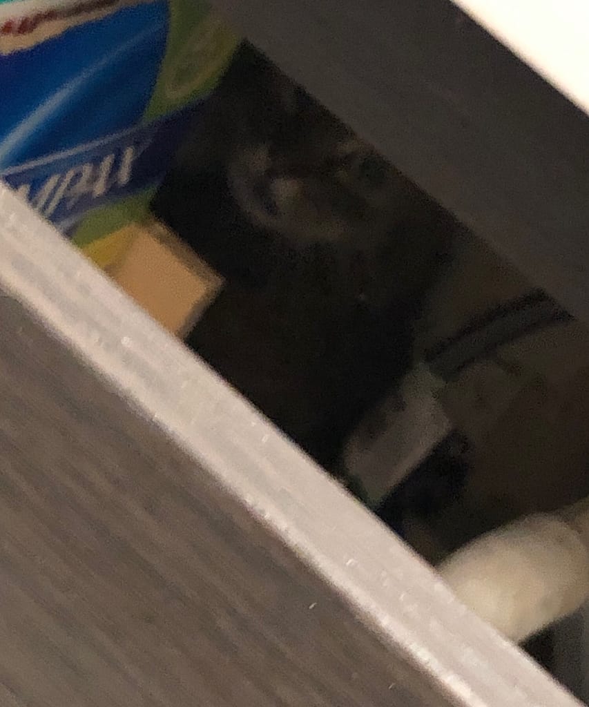 Apparently when the little lunatic isn’t under the sofa, he’s in the drawer under my bathroom sink… yes, it was fun for both of us when I opened that drawer…