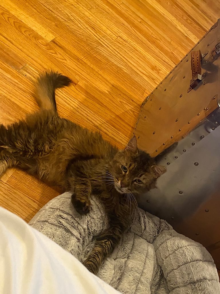 Huge progress today, the little lunatic came over to me (lying on the sofa) to get pets. Then, he jumped up onto the sofa with me! I got a couple of pets in before he realized what he’d done, freaked out and kinda jumped/kinda fell off the sofa… 😂